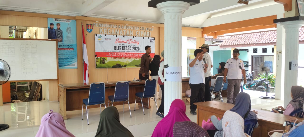 Cipari, Rabu 26 November 2025 — Pemerintah pusat melalui PT Pos Indonesia melaksanakan penyaluran Bantuan Langsung Tunai Sosial (BLTS) Kesra Tahun 2025 yang dipusatkan di Kantor Kecamatan Cipari. Kegiatan ini merupakan bagian dari program pemerintah untuk membantu meningkatkan kesejahteraan masyarakat dan memastikan bantuan sampai kepada warga yang berhak.