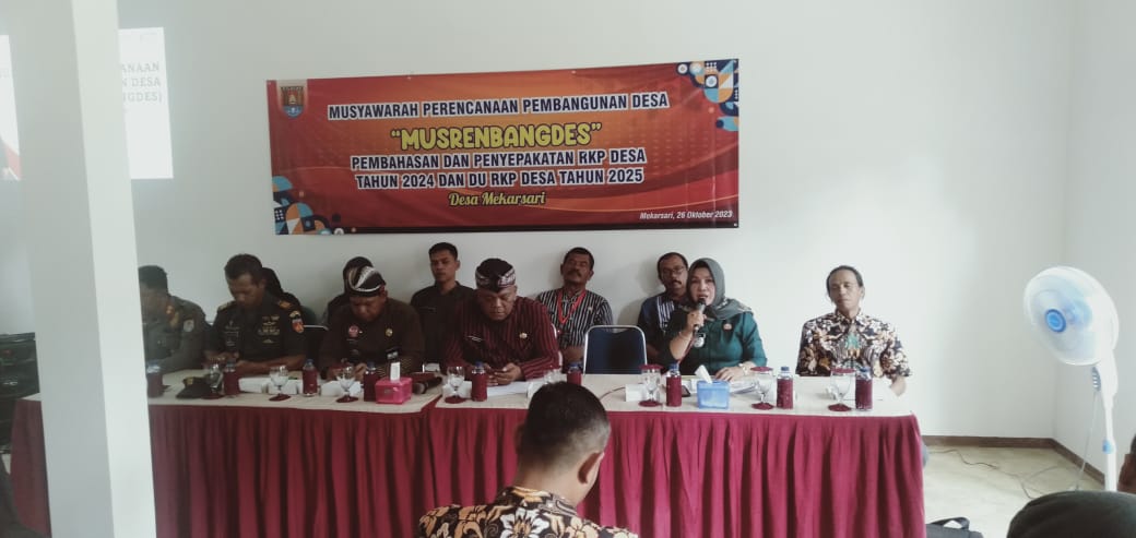 Pada tanggal 26 Oktober 2023, masyarakat Desa Mekarsari, Kecamatan Cipari, Kabupaten Cilacap, berkumpul di aula desa Mekarsari untuk mengadakan acara Murenbangdes (Musyawarah Rencana Pembangunan Desa). Acara ini merupakan momen penting dalam proses perencanaan pembangunan desa, di mana berbagai pihak terlibat, termasuk pemerintah, tokoh masyarakat, tokoh agama, serta berbagai organisasi dan lembaga desa.