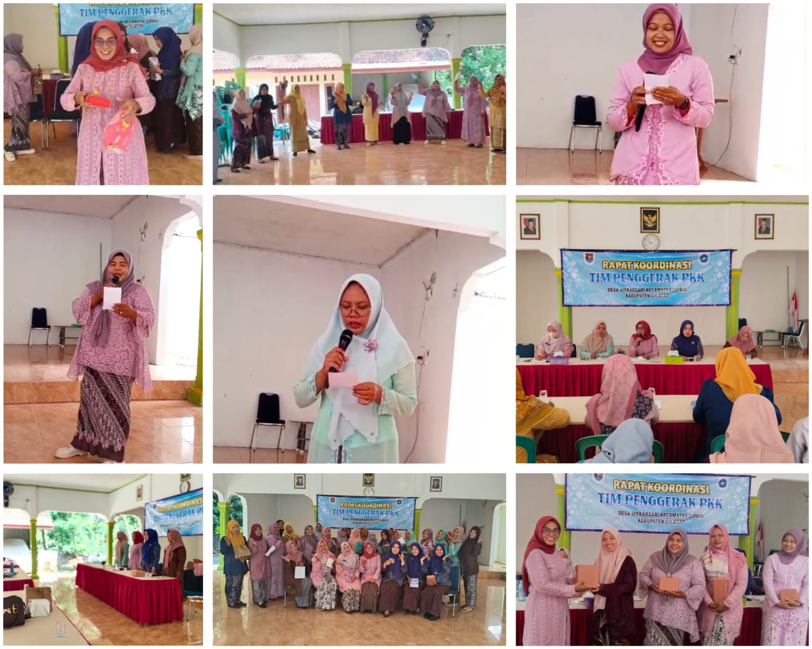 Kegiatan diawali dengan rapat koordinasi yang membahas berbagai program kerja PKK ke depan, evaluasi kegiatan sebelumnya, serta upaya peningkatan peran aktif kader dalam pemberdayaan keluarga dan masyarakat desa. Diskusi berlangsung interaktif dengan berbagai masukan konstruktif dari para anggota yang hadir.