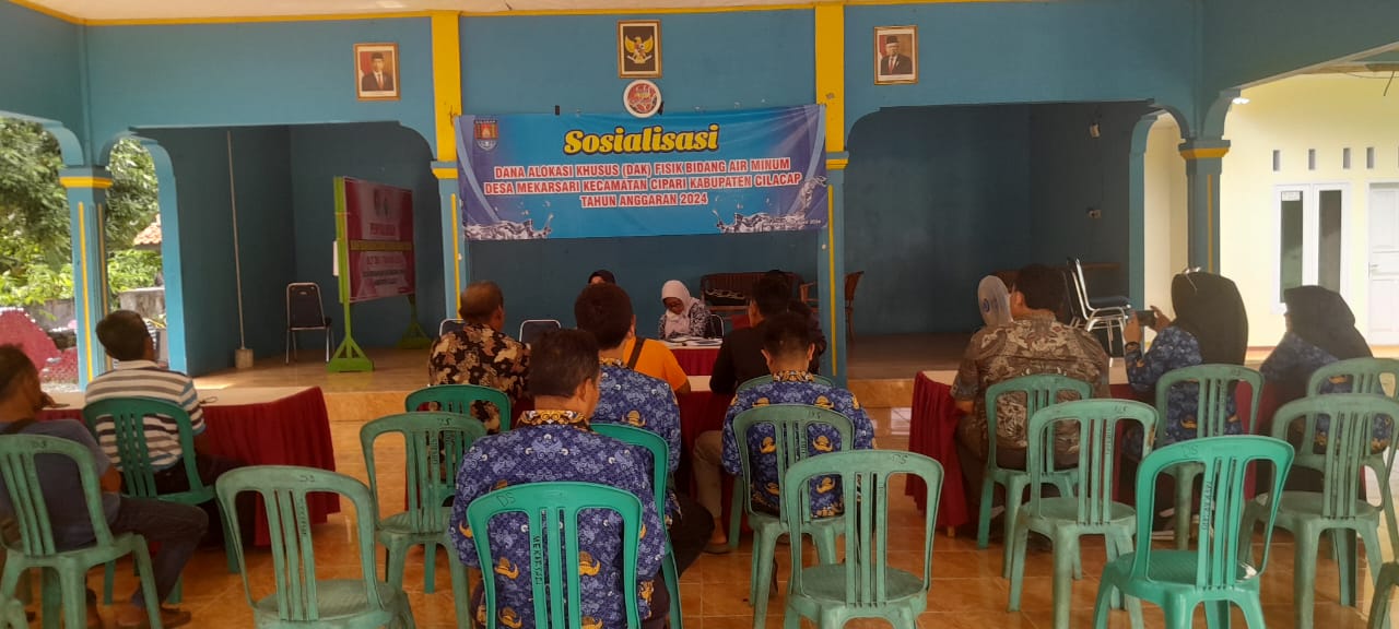 Pada tanggal 17 April 2024, Desa Mekarsari, yang terletak di Kecamatan Cipari, Kabupaten Cilacap, menjadi saksi kegiatan sosialisasi Dana Alokasi Khusus (DAK) bidang Air Minum yang bertujuan untuk meningkatkan akses layanan air bersih bagi warga. Acara ini dihadiri oleh berbagai pihak penting, termasuk Tenaga Fasilitator Lapangan dari Dinas Pengelolaan Sumber Daya Air Minum Cilacap, yaitu Ibu Intan Pujiasih, S.T., dan Bapak Triyadhi Handiyono, A.Md.